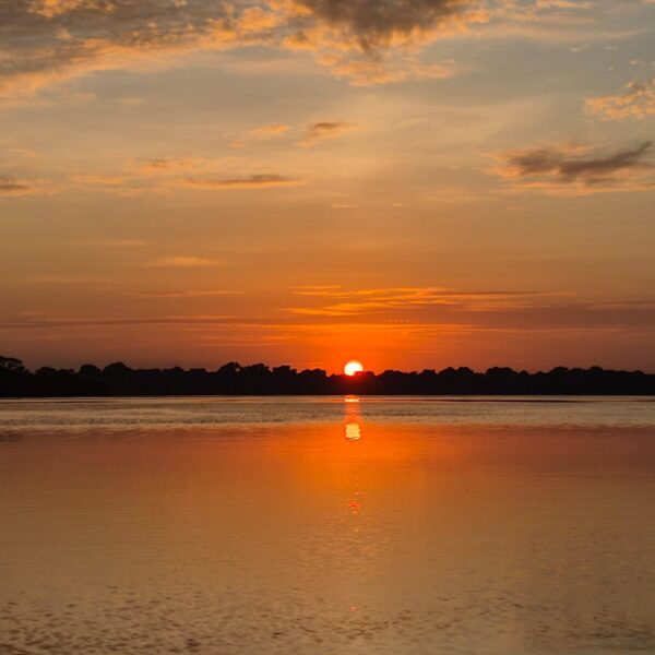 Después del almuerzo iremos a nadar con los delfines rosados. Estos animales son conocidos por su hocico largo y su color rosado. Los podemos tocar con cuidado y sentir su piel ten suave! Por la tardecita iremos a ver el atardecer y escuchar el sonido del bosque al caer la tarde. Luego navegaremos hacia el Parque Anavilhanas donde dormiremos esa noche atracados.